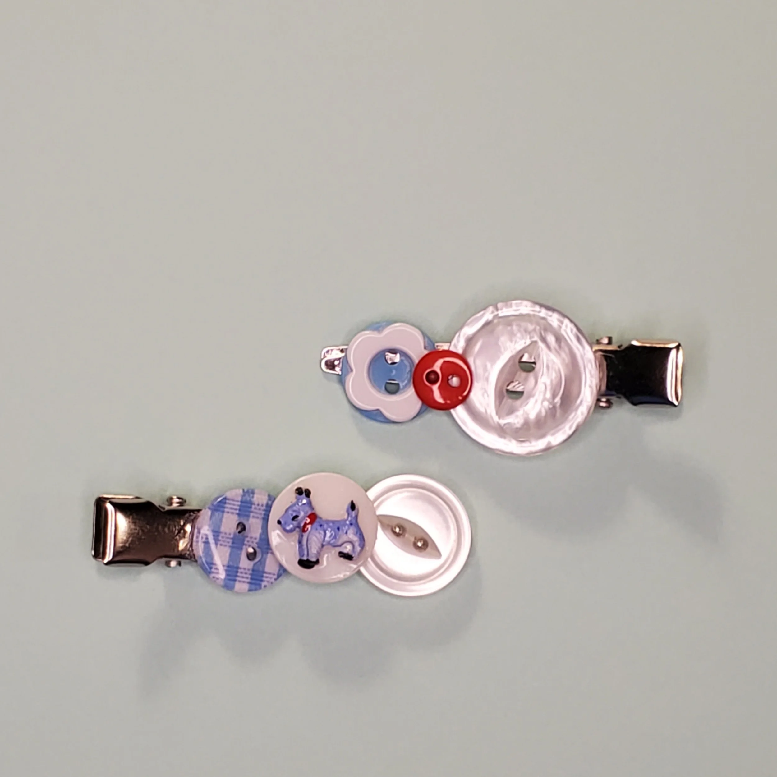 Handmade shiny white button bracelet with star charms.